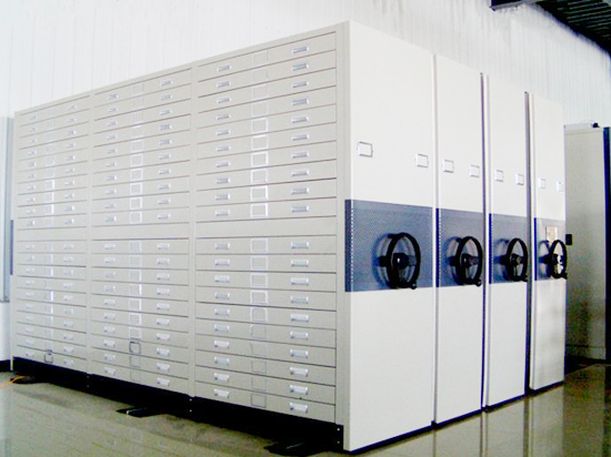 底圖架不同于檔案密集架,采用的是抽屜式結構,每列擁有百余個抽屜。特殊的結構也決定了它的作用只能用來存放設計圖、書畫、數據表等文件。因容量大、利用空間、使用方便。